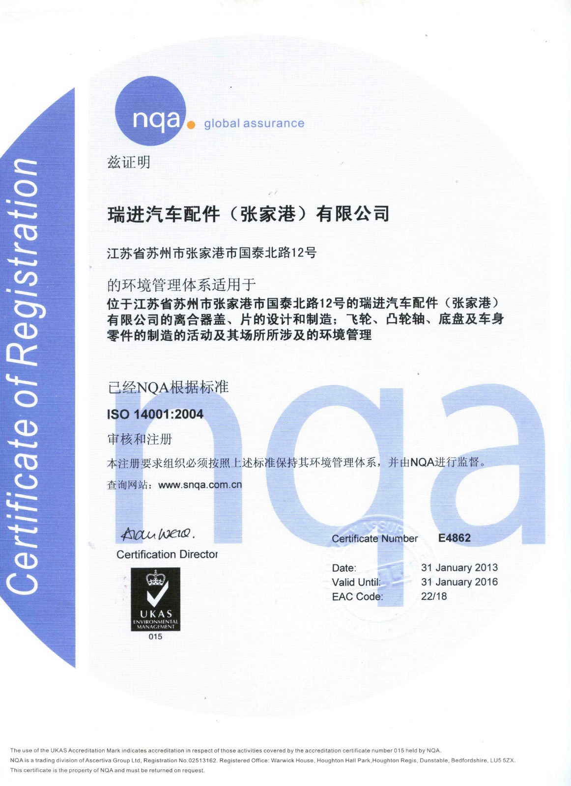 瑞进汽车配件(张家港)有限公司是一家韩国独资企业,成立于2002年9月23日,占地面积约16668平方米,项目总投资600万美元,公司技术力量雄厚,工艺先进,主要产品有:离合器,发动机支架,变速箱支架,油门踏板,离合器踏板,左右拉杆总成,发动机飞轮等。